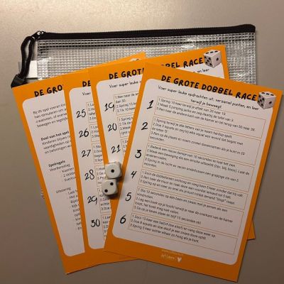 Tip: Ook het jonge kind kan meespelen! Voor het jonge kind kun je ervoor kiezen om de ogen van de dobbelstenen bij elkaar op te tellen. Dus er een + som van te maken.