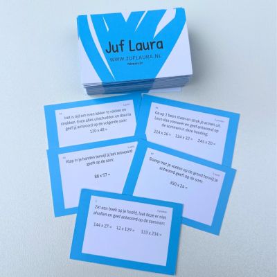 De kaartjes van ons rekenspel zijn nu ook los te bestellen per niveau! Kies voor Niveau 3+ (complexe sommen als 123 x 24)
